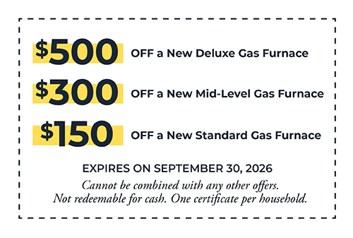 Just for entering 5 FREE Furnaces Giveaway, each entry/home will receive a coupon for up to $500 OFF installation of a New Gas Furnace!